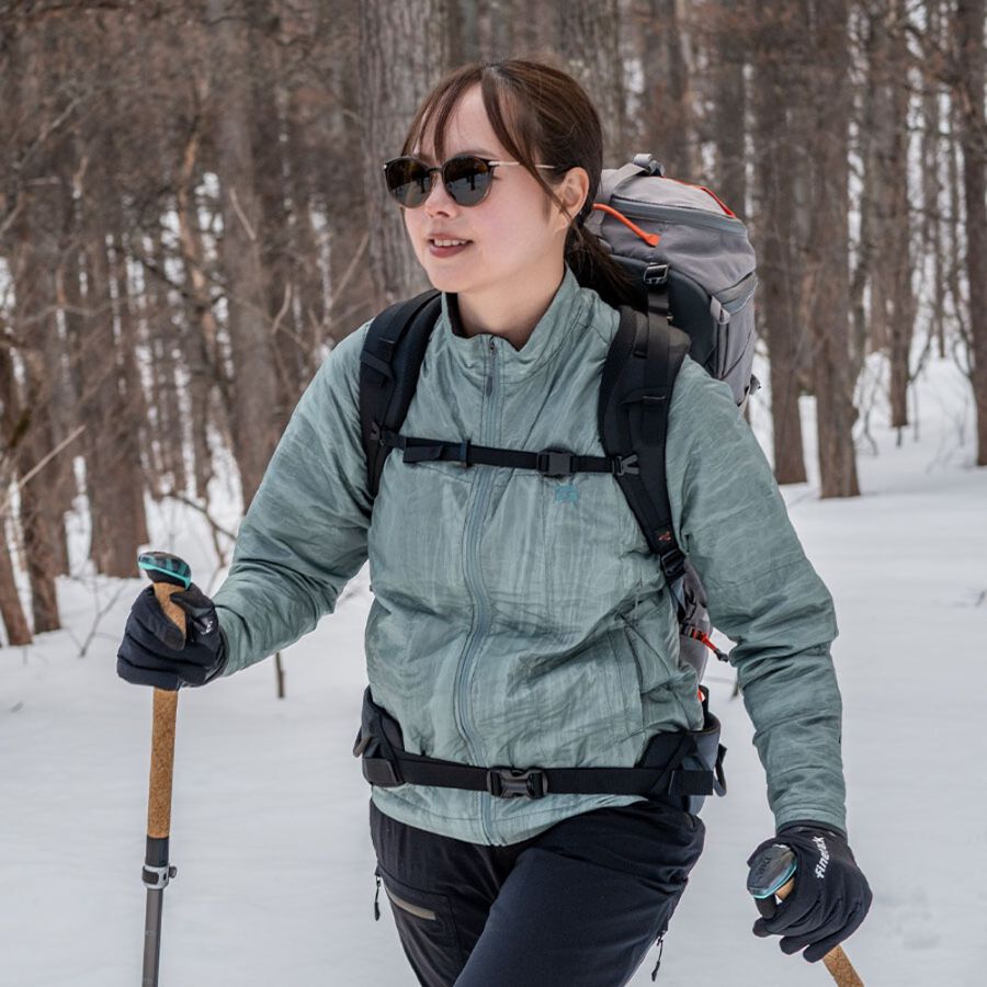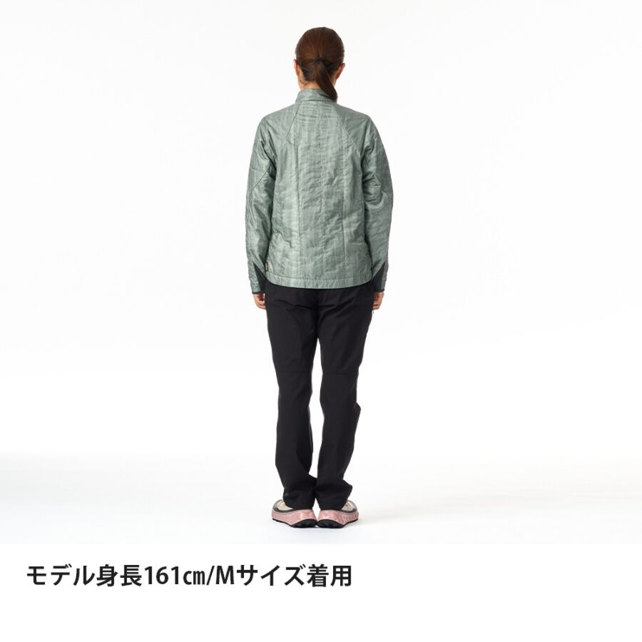 保温素材として独自開発の「ファインポリゴン®」を封入。汗・水・雪・結露などで濡れた際もロフトを維持し、保温力を確保できます。
