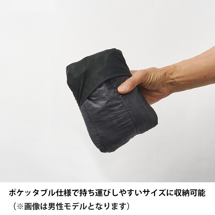 ポケットに収納できる「ポケッタブル」仕様。200gを切る軽量性を実現。